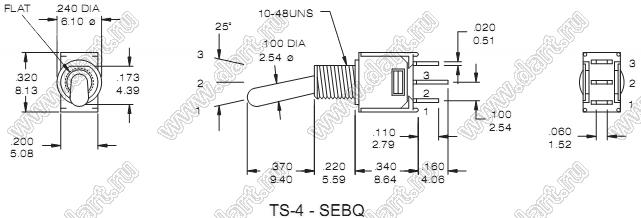 Каталог > Электронные компоненты, радиодетали > Переключатели, кнопки > Переключатели рычажные (тумблеры, TOGGLE) > TS-4, TS-5 Переключатели рычажные сверхминиатюрные > TS-4-SEBQ-E-H (TS-41BSTQN)