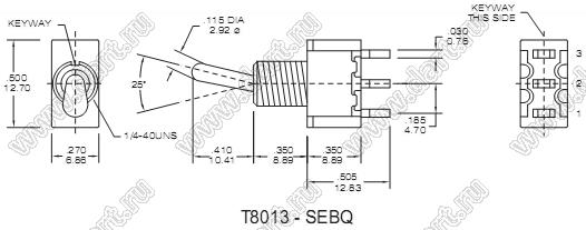 Каталог > Электронные компоненты, радиодетали > Переключатели, кнопки > Переключатели рычажные (тумблеры, TOGGLE) > T80-T Переключатели рычажные миниатюрные прямые > T8013-SEBQ-E-H (T-1011BSTQ)