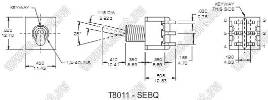 Каталог > Электронные компоненты, радиодетали > Переключатели, кнопки > Переключатели рычажные (тумблеры, TOGGLE) > T80-T Переключатели рычажные миниатюрные прямые > T8011-SEBQ-E-H (T1021BSTQ)