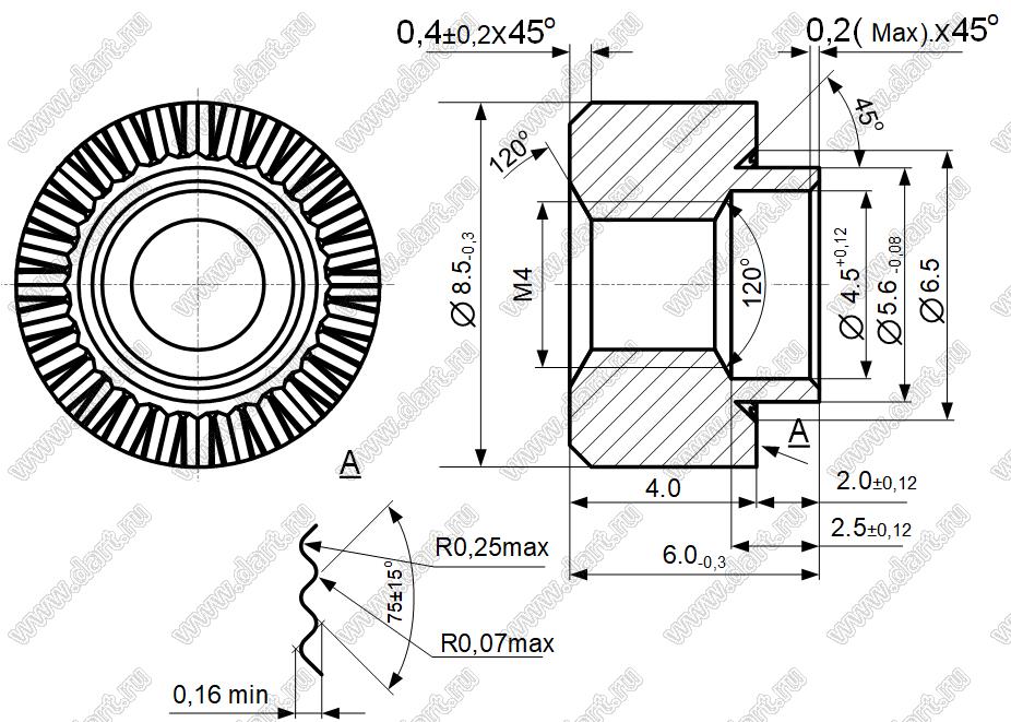 Каталог > Фурнитура для электронных устройств > Крепеж металлический (метизы) и пластиковый > Втулки резьбовые развальцовочные (бонки) > Втулки резьбовые развальцовочные (бонки) M4 > СИШК713367.016-17