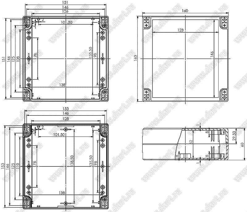 Корпус пластиковый влагозащищенный 160x160x60 мм; пластик ABS