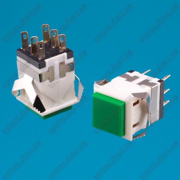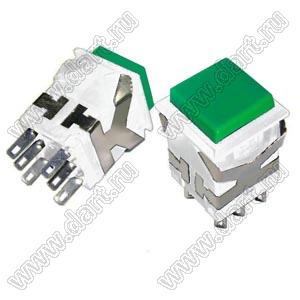 переключатель кнопочный с фиксацией (белый корпус/зеленая клавиша)