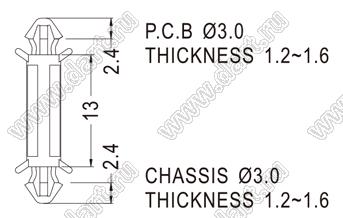Каталог > Фурнитура для электронных устройств > Фиксаторы плат, стойки межплатные > Фиксаторы под круглое отверстие > Фиксаторы с двумя защелками > Прочие > CBSA-13