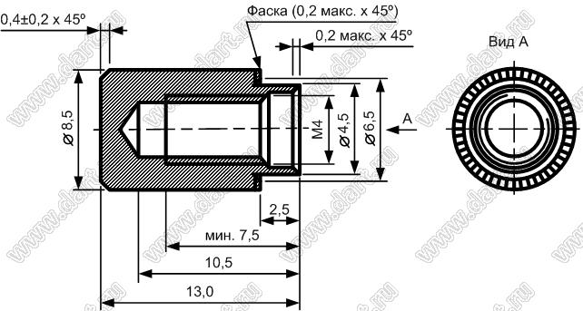 Каталог > Фурнитура для электронных устройств > Крепеж металлический (метизы) и пластиковый > Втулки резьбовые развальцовочные (бонки) > Втулки резьбовые развальцовочные (бонки) M4 > BONRP-М4D8,5H10,5 (BON413FB)