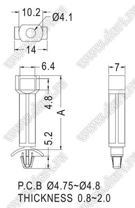 Диаметр отверстия в плате dп: 4,75~4,80 мм