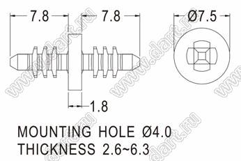Каталог > Фурнитура для электронных устройств > Фиксаторы плат, стойки межплатные > Фиксаторы под круглое отверстие > Фиксаторы с двумя защелками > Прочие > WBHB-1.8