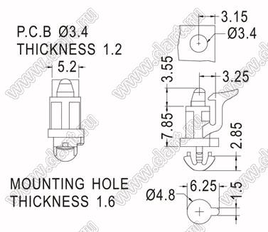 Каталог > Фурнитура для электронных устройств > Фиксаторы плат, стойки межплатные > Фиксаторы под круглое отверстие > Фиксаторы с двумя защелками > Прочие > ULCBA-7.8