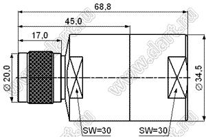 Каталог > Электронные компоненты, радиодетали > Разъёмы (соединители, переходники) > Разъемы высокочастотные коаксиальные > N серия > JC3.650.226 (N-J-7/8-BN)