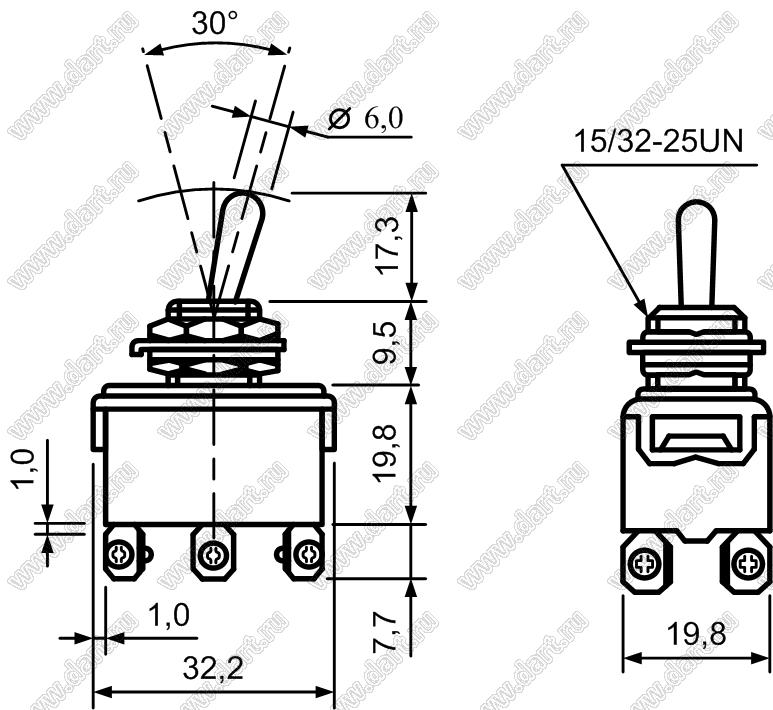 Каталог > Электронные компоненты, радиодетали > Переключатели, кнопки > Переключатели рычажные (тумблеры, TOGGLE) > Прочее > T902BW (KN-1321)