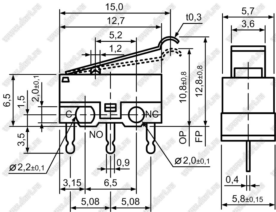 Каталог > Электронные компоненты, радиодетали > Переключатели, кнопки > Переключатели концевые/микропереключатели (MICRO) > DM > DM1-02P-40 (KW10-1)