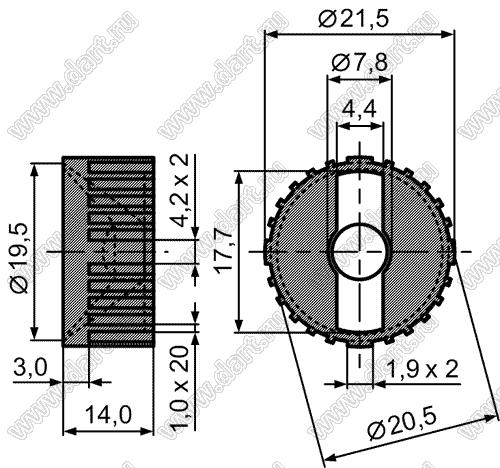 линза для светодиода, D=21,5мм, H=14мм, 30град; поликарбонат