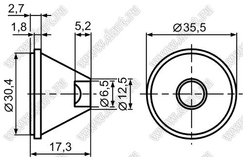 линза для светодиода, D=36мм, d=7мм, H=17,4мм, 60град; поликарбонат
