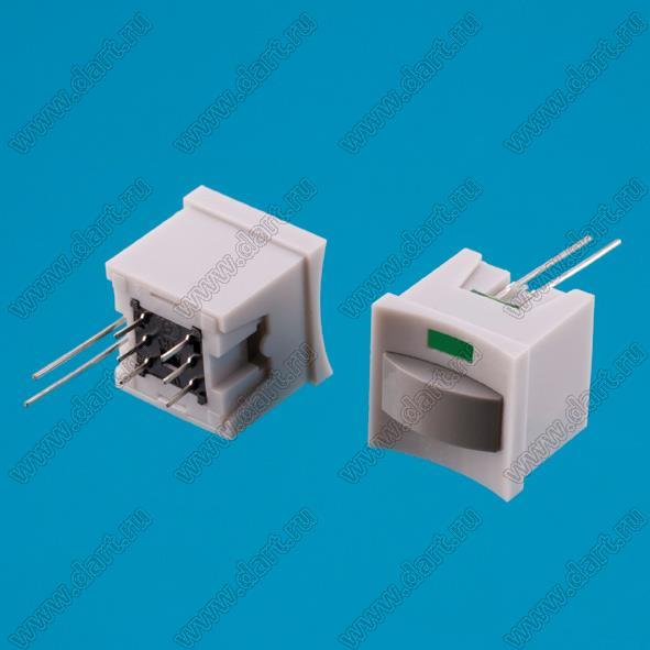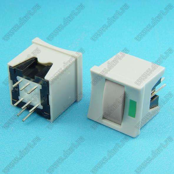 Переключатель кнопочный (серый корпус, серая клавиша, зеленый светодиод, c фиксацией)