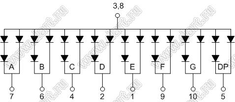 Каталог > Оптоэлектроника и индикация > Индикаторы светодиодные (сегментные дисплеи, матрицы, шкалы, светящиеся поля) > Цифровые и цифро-буквенные cветодиодные сегментные индикаторы (дисплеи) > 1 разрядные сегментные индикаторы > 1-разр. 1 дюйм. 7-сегм. 10106 серия > BJ10106BW