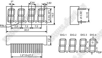 Каталог > Оптоэлектроника и индикация > Индикаторы светодиодные (сегментные дисплеи, матрицы, шкалы, светящиеся поля) > Цифровые и цифро-буквенные cветодиодные сегментные индикаторы (дисплеи) > 4-разрядные сегментные индикаторы > 4-разр. 0.36 дюйм. 7-сегм. 3461 серия > BJ3461KW