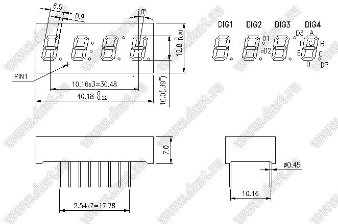 Каталог > Оптоэлектроника и индикация > Индикаторы светодиодные (сегментные дисплеи, матрицы, шкалы, светящиеся поля) > Цифровые и цифро-буквенные cветодиодные сегментные индикаторы (дисплеи) > 4-разрядные сегментные индикаторы > 4-разр. 0.39 дюйм. 7-сегм. 3494 серия > BJ3494AW