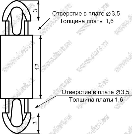 Каталог > Фурнитура для электронных устройств > Фиксаторы плат, стойки межплатные > Фиксаторы под круглое отверстие > Фиксаторы с двумя защелками > Прочие > MAD3.5-12
