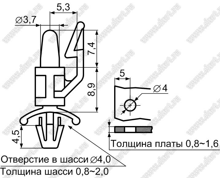 Каталог > Фурнитура для электронных устройств > Фиксаторы плат, стойки межплатные > Фиксаторы под круглое отверстие > Фиксаторы с двумя защелками > Прочие > ULCE-9