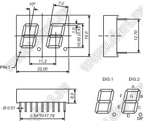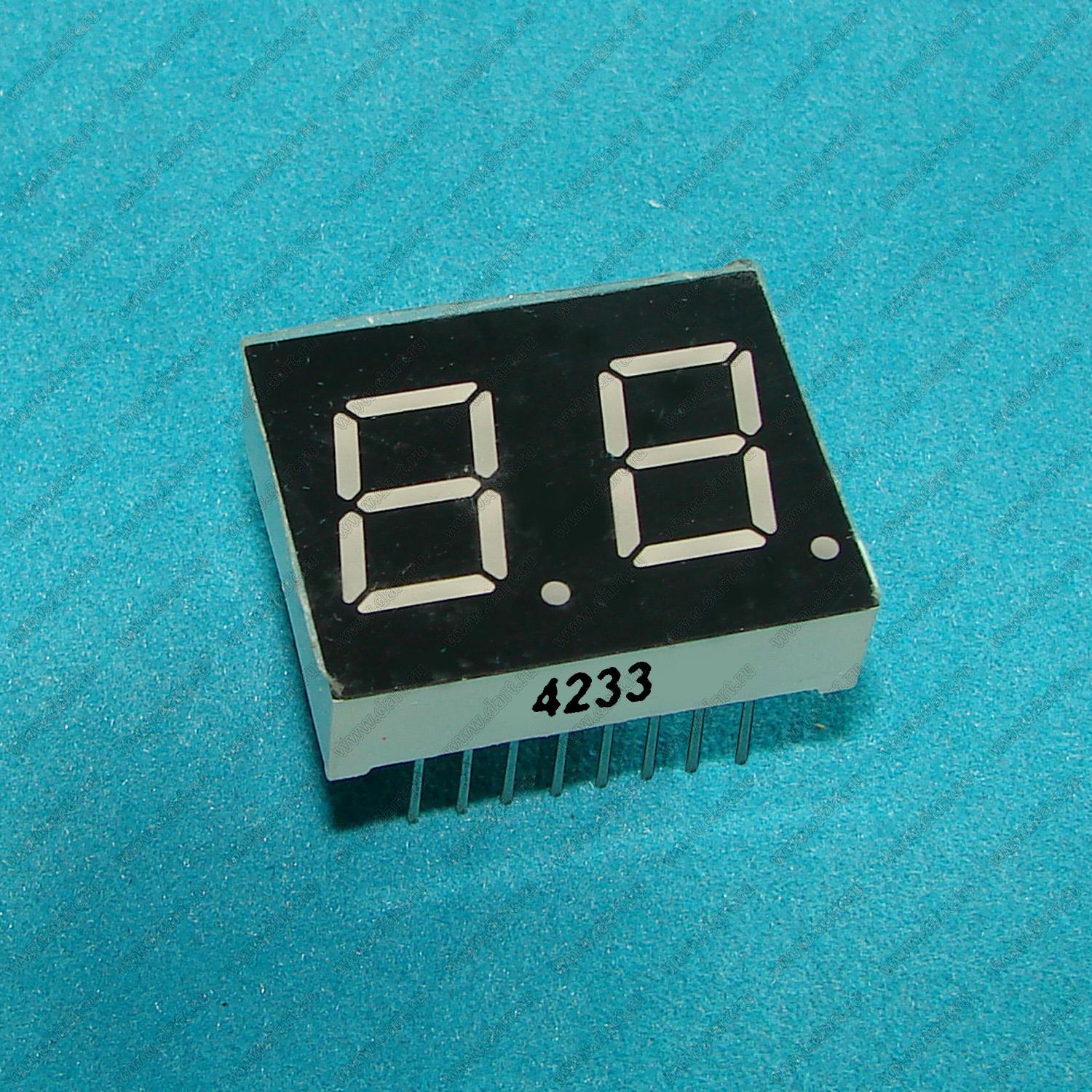 Каталог > Оптоэлектроника и индикация > Индикаторы светодиодные (сегментные дисплеи, матрицы, шкалы, светящиеся поля) > Цифровые и цифро-буквенные cветодиодные сегментные индикаторы (дисплеи) > 2-разрядные сегментные индикаторы > 2-разр. 0.43 дюйм. 7-сегм. 4233 серия > BJ4233AW