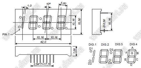 Каталог > Оптоэлектроника и индикация > Индикаторы светодиодные (сегментные дисплеи, матрицы, шкалы, светящиеся поля) > Цифровые и цифро-буквенные cветодиодные сегментные индикаторы (дисплеи) > 4-разрядные сегментные индикаторы > 4-разр. 0.43 дюйм. 7-сегм. 4432 серия > BJ4432BW