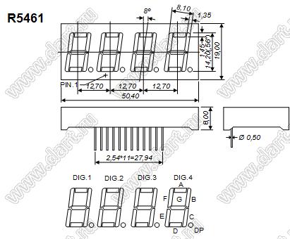 Каталог > Оптоэлектроника и индикация > Индикаторы светодиодные (сегментные дисплеи, матрицы, шкалы, светящиеся поля) > Цифровые и цифро-буквенные cветодиодные сегментные индикаторы (дисплеи) > 4-разрядные сегментные индикаторы > 4-разр. 0.56 дюйм. 7-сегм. 5461 серия > BJ5461FW