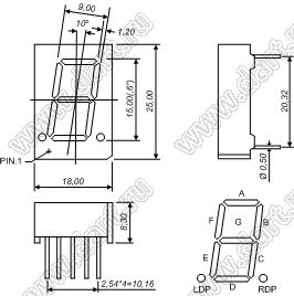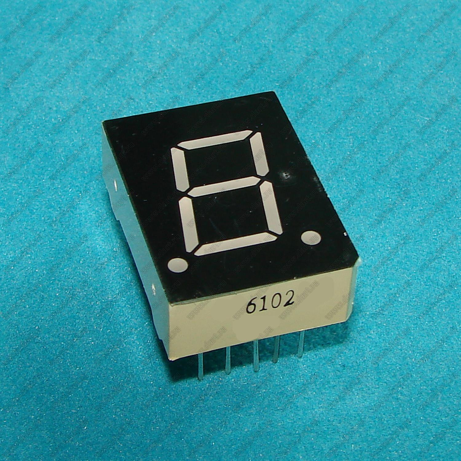 Каталог > Оптоэлектроника и индикация > Индикаторы светодиодные (сегментные дисплеи, матрицы, шкалы, светящиеся поля) > Цифровые и цифро-буквенные cветодиодные сегментные индикаторы (дисплеи) > 1 разрядные сегментные индикаторы > 1-разр. 0.6 дюйм. 7-сегм. 6102 серия > BJ6102DW