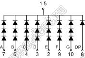 Каталог > Оптоэлектроника и индикация > Индикаторы светодиодные (сегментные дисплеи, матрицы, шкалы, светящиеся поля) > Цифровые и цифро-буквенные cветодиодные сегментные индикаторы (дисплеи) > 1 разрядные сегментные индикаторы > 1-разр. 1.5 дюйм. 7-сегм. 15102 серия > BJ15102EPG