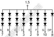 Каталог > Оптоэлектроника и индикация > Индикаторы светодиодные (сегментные дисплеи, матрицы, шкалы, светящиеся поля) > Цифровые и цифро-буквенные cветодиодные сегментные индикаторы (дисплеи) > 1 разрядные сегментные индикаторы > 1-разр. 1.5 дюйм. 7-сегм. 15102 серия > BJ15102FPG