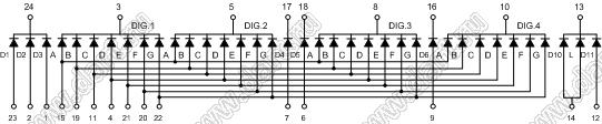 Каталог > Оптоэлектроника и индикация > Индикаторы светодиодные (сегментные дисплеи, матрицы, шкалы, светящиеся поля) > Цифровые и цифро-буквенные cветодиодные сегментные индикаторы (дисплеи) > 4-разрядные сегментные индикаторы > 4-разр. 0.25 дюйм. 7-сегм. 2451 серия > BJ2451APG