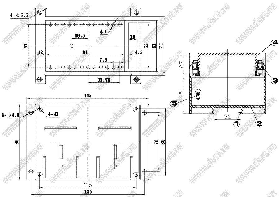 Промышленный управляющий корпус (комплект с двумя клеммными колодками) 145x90x72 мм