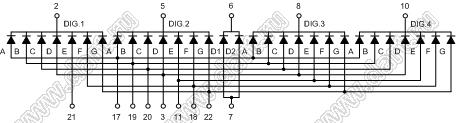 Каталог > Оптоэлектроника и индикация > Индикаторы светодиодные (сегментные дисплеи, матрицы, шкалы, светящиеся поля) > Цифровые и цифро-буквенные cветодиодные сегментные индикаторы (дисплеи) > 4-разрядные сегментные индикаторы > 4-разр. 0.3 дюйм. 7-сегм. 3407 серия > BJ3407EPG