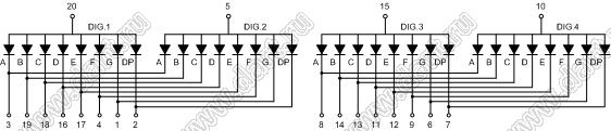 Каталог > Оптоэлектроника и индикация > Индикаторы светодиодные (сегментные дисплеи, матрицы, шкалы, светящиеся поля) > Цифровые и цифро-буквенные cветодиодные сегментные индикаторы (дисплеи) > 4-разрядные сегментные индикаторы > 4-разр. 0.36 дюйм. 7-сегм. 3461 серия > BJ3461HPG