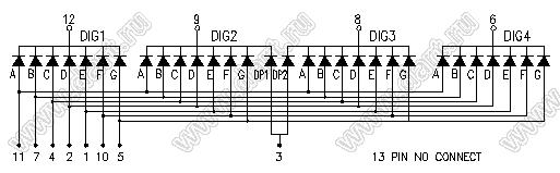 Каталог > Оптоэлектроника и индикация > Индикаторы светодиодные (сегментные дисплеи, матрицы, шкалы, светящиеся поля) > Цифровые и цифро-буквенные cветодиодные сегментные индикаторы (дисплеи) > 4-разрядные сегментные индикаторы > 4-разр. 0.39 дюйм. 7-сегм. 3496 серия > BJ3496CPG