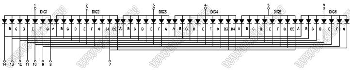 Каталог > Оптоэлектроника и индикация > Индикаторы светодиодные (сегментные дисплеи, матрицы, шкалы, светящиеся поля) > Цифровые и цифро-буквенные cветодиодные сегментные индикаторы (дисплеи) > 6-разрядные 7-сегментные индикаторы > 6-разр. 0.36 дюйм. 7-сегм. 3663 серия > BJ3663DPG
