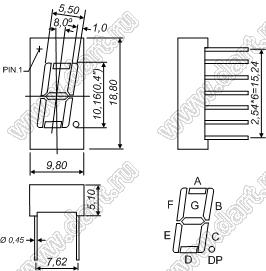 Каталог > Оптоэлектроника и индикация > Индикаторы светодиодные (сегментные дисплеи, матрицы, шкалы, светящиеся поля) > Цифровые и цифро-буквенные cветодиодные сегментные индикаторы (дисплеи) > 1 разрядные сегментные индикаторы > 1-разр. 0.4 дюйм. 7-сегм. 4101 серия > BJ4101DPG