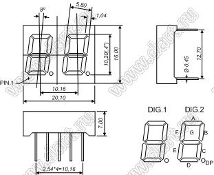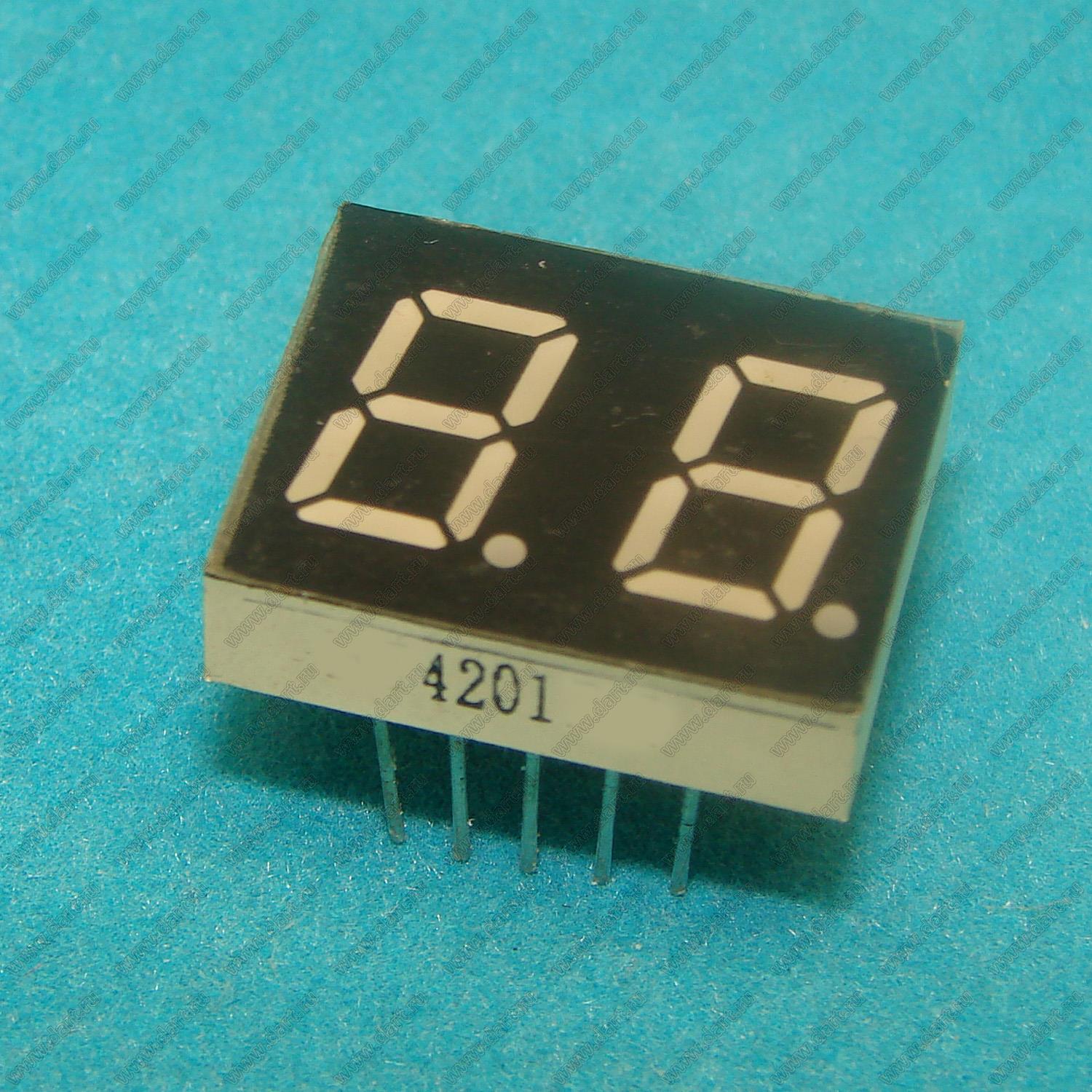 Каталог > Оптоэлектроника и индикация > Индикаторы светодиодные (сегментные дисплеи, матрицы, шкалы, светящиеся поля) > Цифровые и цифро-буквенные cветодиодные сегментные индикаторы (дисплеи) > 2-разрядные сегментные индикаторы > 2-разр. 0.4 дюйм. 7-сегм. 4201 серия > BJ4201IPG