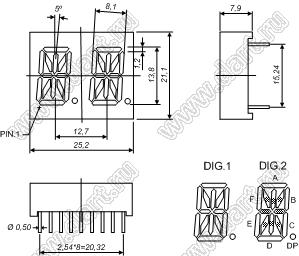 Каталог > Оптоэлектроника и индикация > Индикаторы светодиодные (сегментные дисплеи, матрицы, шкалы, светящиеся поля) > Цифровые и цифро-буквенные cветодиодные сегментные индикаторы (дисплеи) > 2-разрядные сегментные индикаторы > 2-разр. 0.54 дюйм. 14-сегм. 5241 серия > BJ5241APG