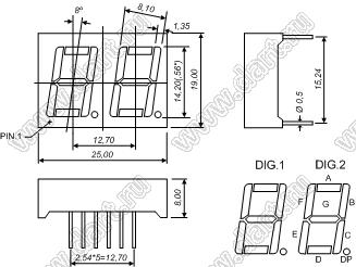 Каталог > Оптоэлектроника и индикация > Индикаторы светодиодные (сегментные дисплеи, матрицы, шкалы, светящиеся поля) > Цифровые и цифро-буквенные cветодиодные сегментные индикаторы (дисплеи) > 2-разрядные сегментные индикаторы > 2-разр. 0.56 дюйм. 7-сегм. 5261 серия > BJ5261EPG