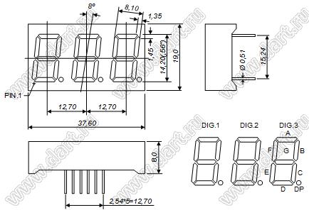 Каталог > Оптоэлектроника и индикация > Индикаторы светодиодные (сегментные дисплеи, матрицы, шкалы, светящиеся поля) > Цифровые и цифро-буквенные cветодиодные сегментные индикаторы (дисплеи) > 3-разрядные 7-сегментные индикаторы > 3-разр. 0.56 дюйм. 7-сегм. 5364 серия > BJ5364BPG