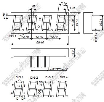 Каталог > Оптоэлектроника и индикация > Индикаторы светодиодные (сегментные дисплеи, матрицы, шкалы, светящиеся поля) > Цифровые и цифро-буквенные cветодиодные сегментные индикаторы (дисплеи) > 4-разрядные сегментные индикаторы > 4-разр. 0.56 дюйм. 7-сегм. 5466 серия > BJ5466BPG