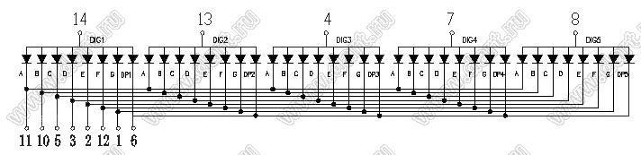 Каталог > Оптоэлектроника и индикация > Индикаторы светодиодные (сегментные дисплеи, матрицы, шкалы, светящиеся поля) > Цифровые и цифро-буквенные cветодиодные сегментные индикаторы (дисплеи) > 5-разрядные 7-сегментные индикаторы > 5-разр. 0.56 дюйм. 7-сегм. 5561 серия > BJ5561BPG
