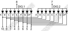 Каталог > Оптоэлектроника и индикация > Индикаторы светодиодные (сегментные дисплеи, матрицы, шкалы, светящиеся поля) > Цифровые и цифро-буквенные cветодиодные сегментные индикаторы (дисплеи) > 2-разрядные сегментные индикаторы > 2-разр. 0.8 дюйм. 7-сегм. 8201 серия > BJ8201HPG