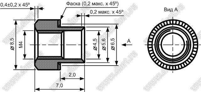 Каталог > Фурнитура для электронных устройств > Крепеж металлический (метизы) и пластиковый > Втулки резьбовые развальцовочные (бонки) > Втулки резьбовые развальцовочные (бонки) M4 > BONR-М4D8,5H5Z