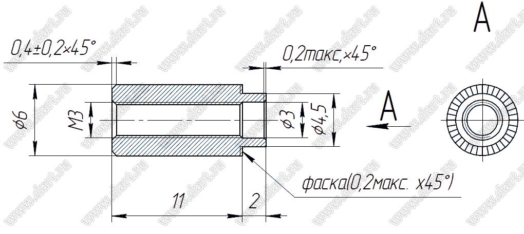 Каталог > Фурнитура для электронных устройств > Крепеж металлический (метизы) и пластиковый > Втулки резьбовые развальцовочные (бонки) > Втулки резьбовые развальцовочные (бонки) M3 > BONR-М3D6H11Z (BON0311)