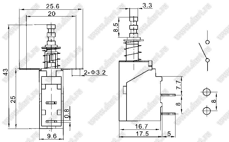 Каталог > Электронные компоненты, радиодетали > Переключатели, кнопки > Переключатели кнопочные (PUSH, кнопки) > KDC серия выключаталей питания > SW-112 (KDC-A10-W111, KDC-A04, PS168L-P-M)