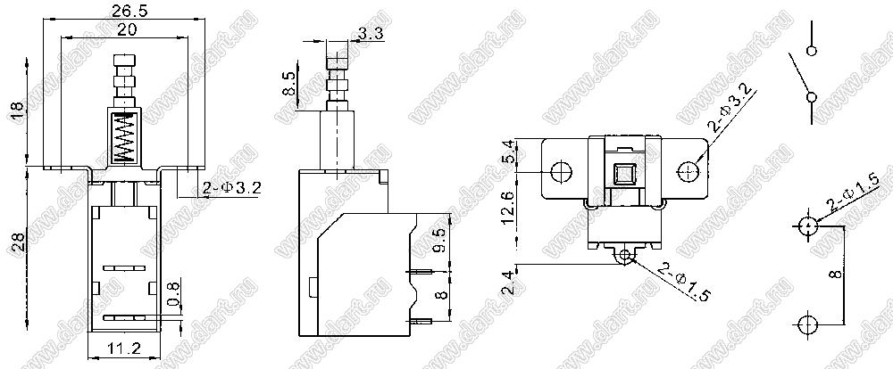 Каталог > Электронные компоненты, радиодетали > Переключатели, кнопки > Переключатели кнопочные (PUSH, кнопки) > KDC серия выключаталей питания > KDC-A10-111D