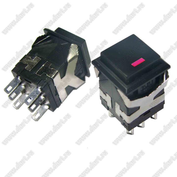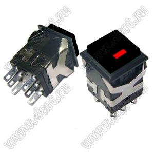 переключатель кнопочный без фиксации (черный корпус/черная клавиша) с красным светодиодом
