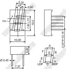 Каталог > Оптоэлектроника и индикация > Индикаторы светодиодные (сегментные дисплеи, матрицы, шкалы, светящиеся поля) > Цифровые и цифро-буквенные cветодиодные сегментные индикаторы (дисплеи) > 1 разрядные сегментные индикаторы > 1-разр. 0.3 дюйм. 7-сегм. 3101 серия > BJ3101AH