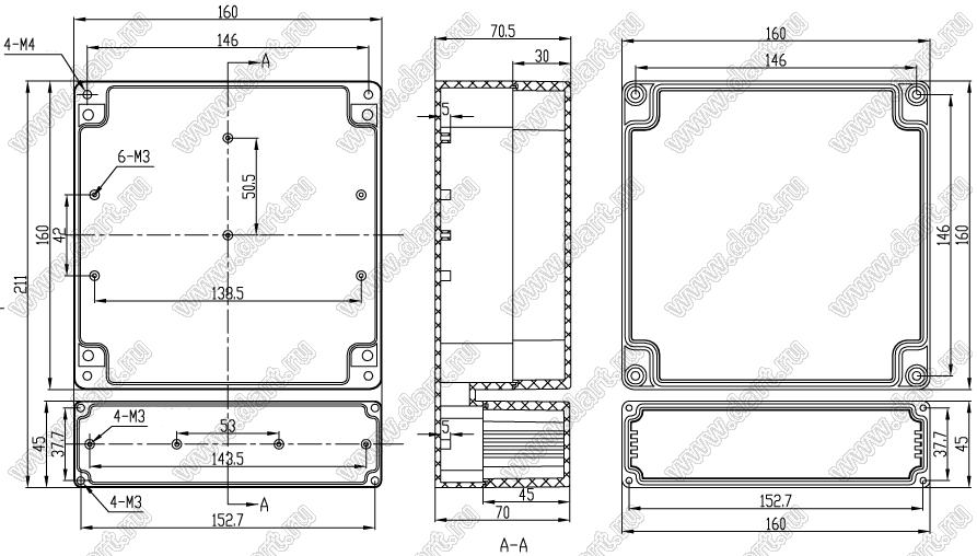 Корпус пластиковый влагозащищенный 211x160x70.5 мм