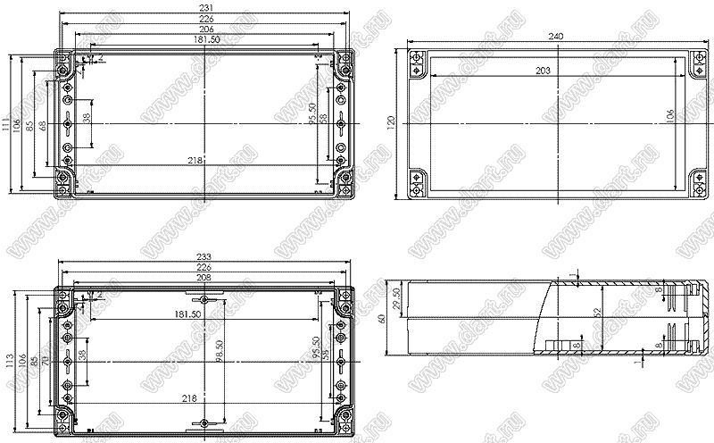 Каталог > Корпусные и установочные изделия > Корпуса для РЭА > Пластиковые влагозащищенные корпуса (Case 11-xx) > Case 11-57